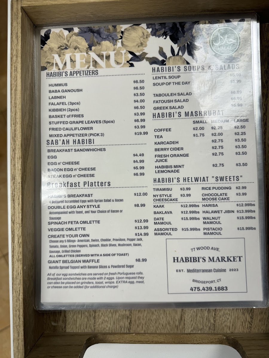 Welcome to Habibi's Market, a hidden gem nestled at 77 Wood Ave, Bridgeport, CT. This Middle Eastern restaurant offers a delightful culinary experience that transcends typical deli fare. The menu features a variety of breakfast options, including hearty breakfast sandwiches and mouthwatering platters like the Habibi's Breakfast and Giant Belgian Waffle. Each dish is crafted with an emphasis on fresh ingredients and authentic flavors, setting the stage for a memorable dining experience.